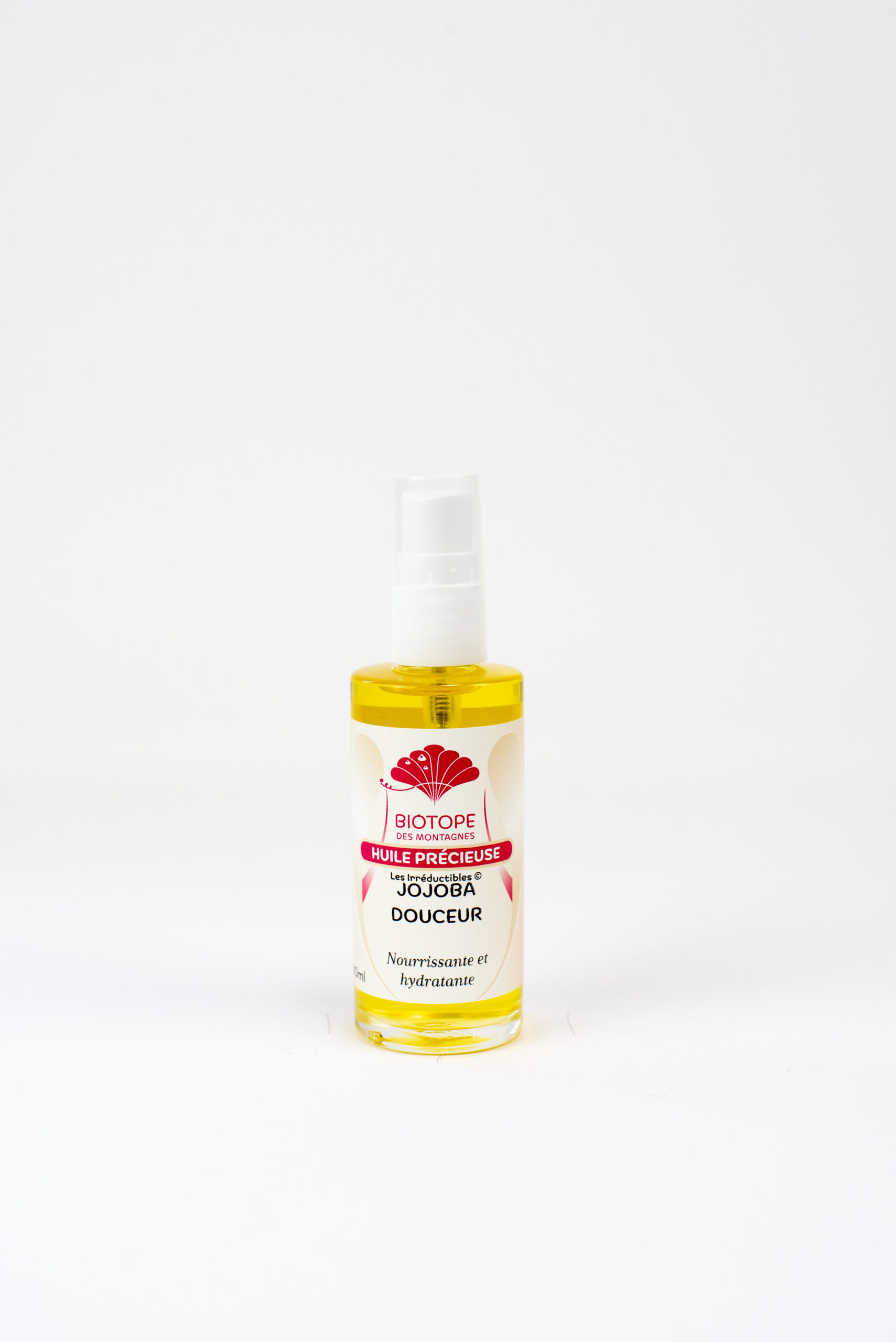 La base de chaque huile de beauté est l'huile de jojoba, cire liquide insaturée, nutritive, fluide et pénétrante. Présente à plus de 95%, elle favorise la diffusion de nos huiles essentielles, obtenues par distillation lente et complète à la vapeur d'eau de source, à faible température et basse pression. Ces mélanges sont préparés dans notre laboratoire.