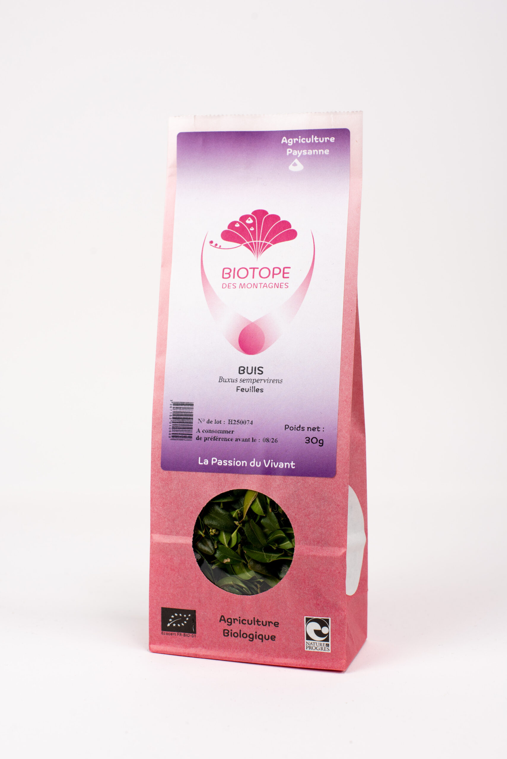 Nous récoltons le buis en sauvage et souvent au printemps pour bénéficier de toute l'énergie déployée par la plante pour grandir. En plein été, le buis se met en sommeil lorsque la saison est trop sèche.