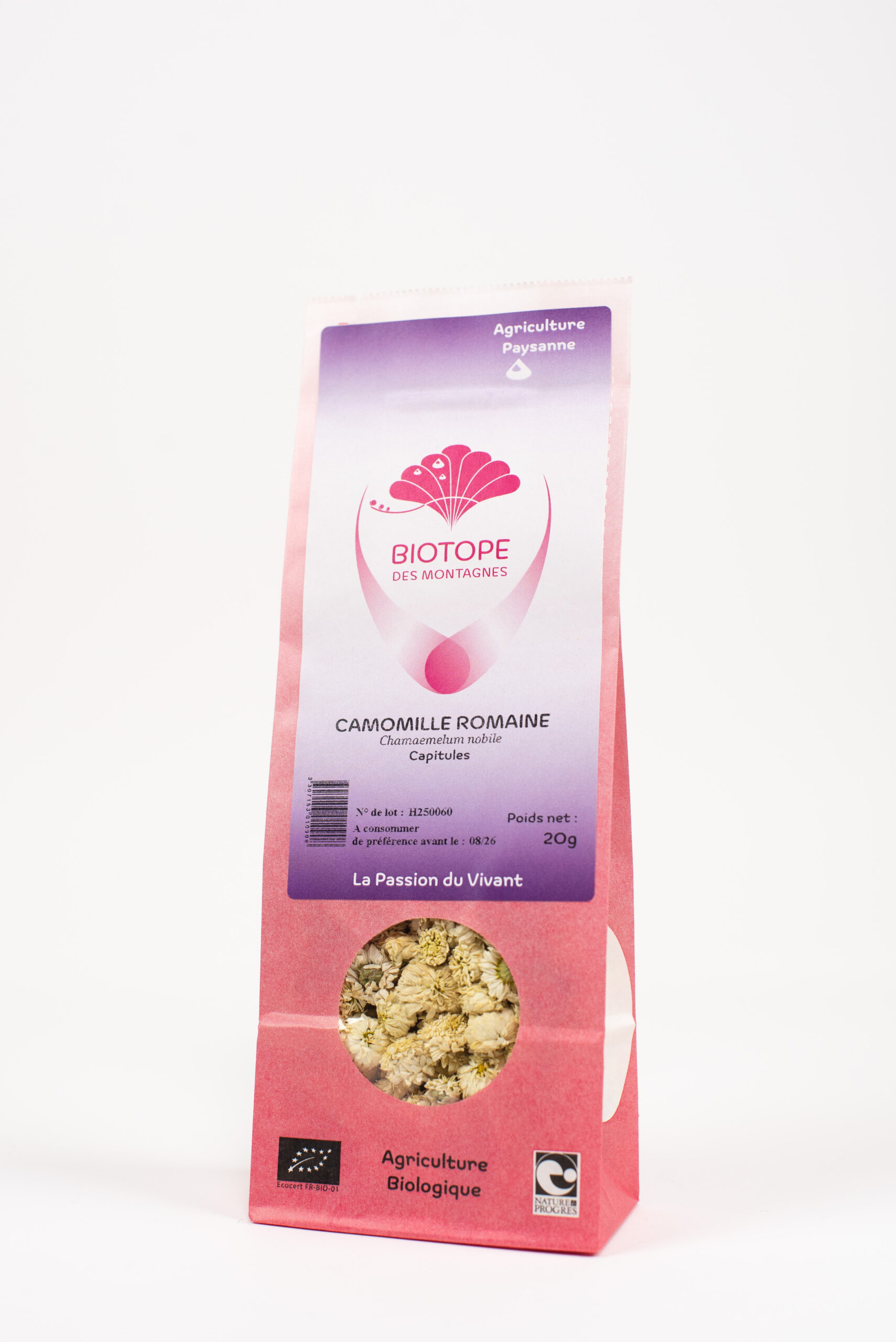 Toutes nos plantes sont issues d’une culture qui respecte l’environnement : elles sont cueillies afin de respecter leur milieu naturel ou produites selon des modes de cultures en milieu naturel, conformément aux quatre cahiers des charges que respecte Biotope des Montagnes.