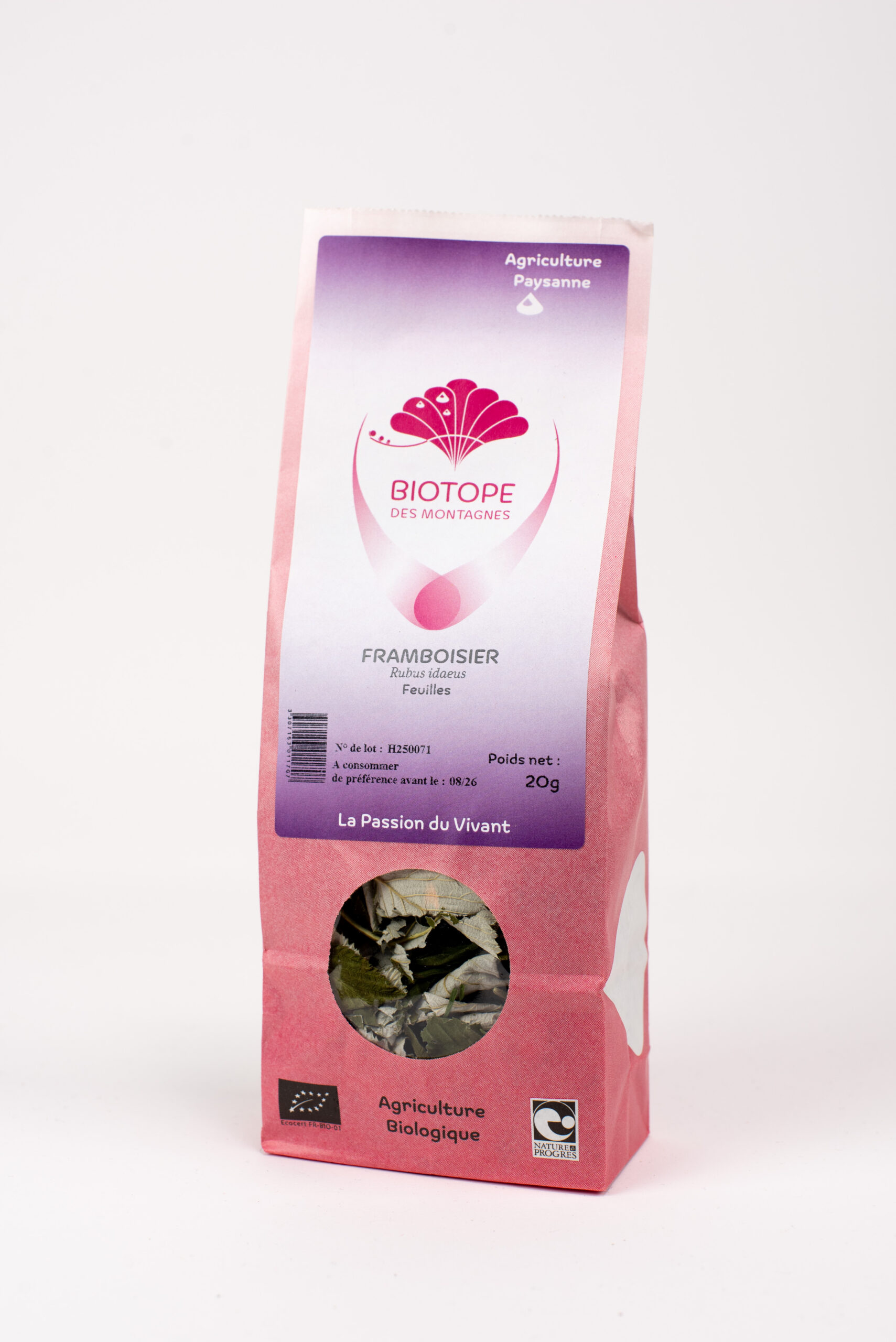 Toutes nos plantes sont issues d’une culture qui respecte l’environnement : elles sont cueillies afin de respecter leur milieu naturel ou produites selon des modes de cultures en milieu naturel, conformément aux quatre cahiers des charges que respecte Biotope des Montagnes.