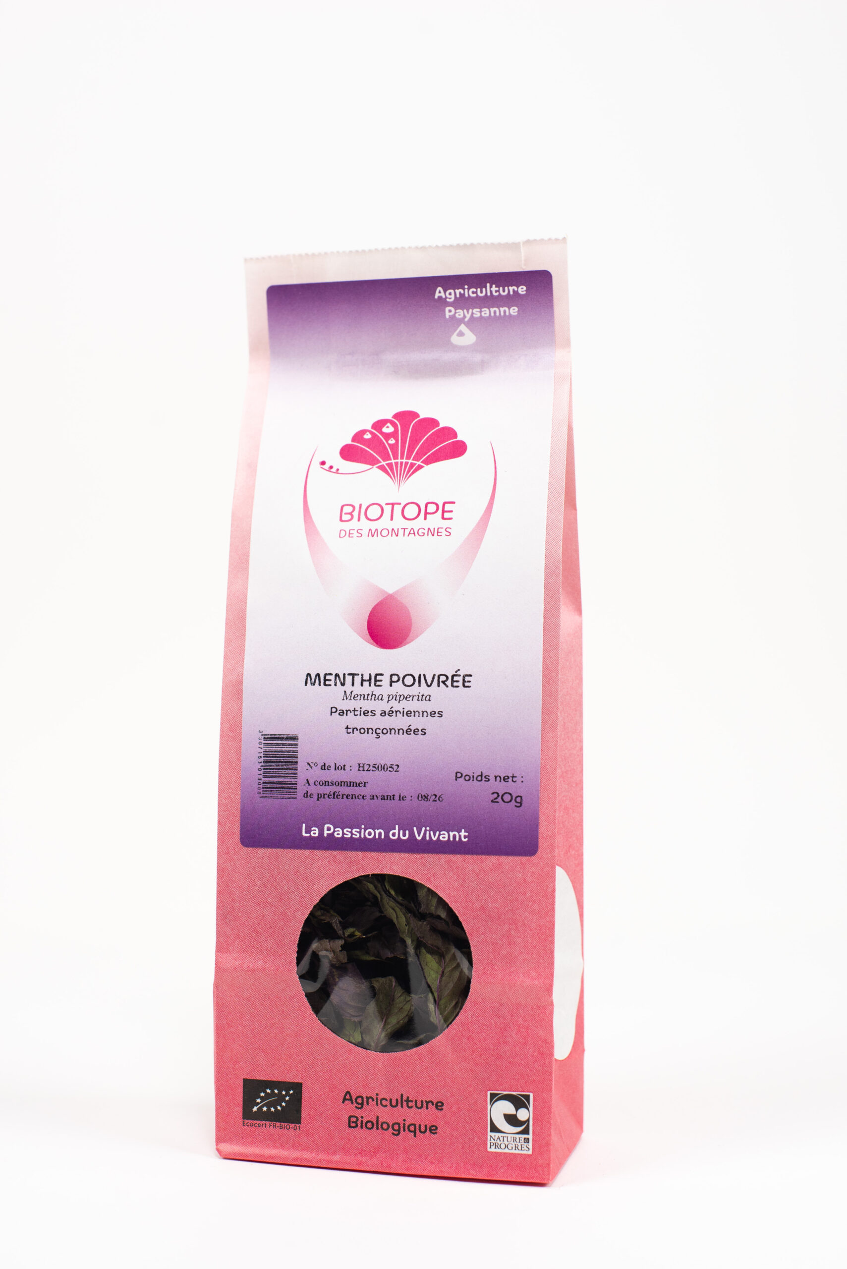 Toutes nos plantes sont issues d’une culture qui respecte l’environnement : elles sont cueillies afin de respecter leur milieu naturel ou produites selon des modes de cultures en milieu naturel, conformément aux quatre cahiers des charges que respecte Biotope des Montagnes.
