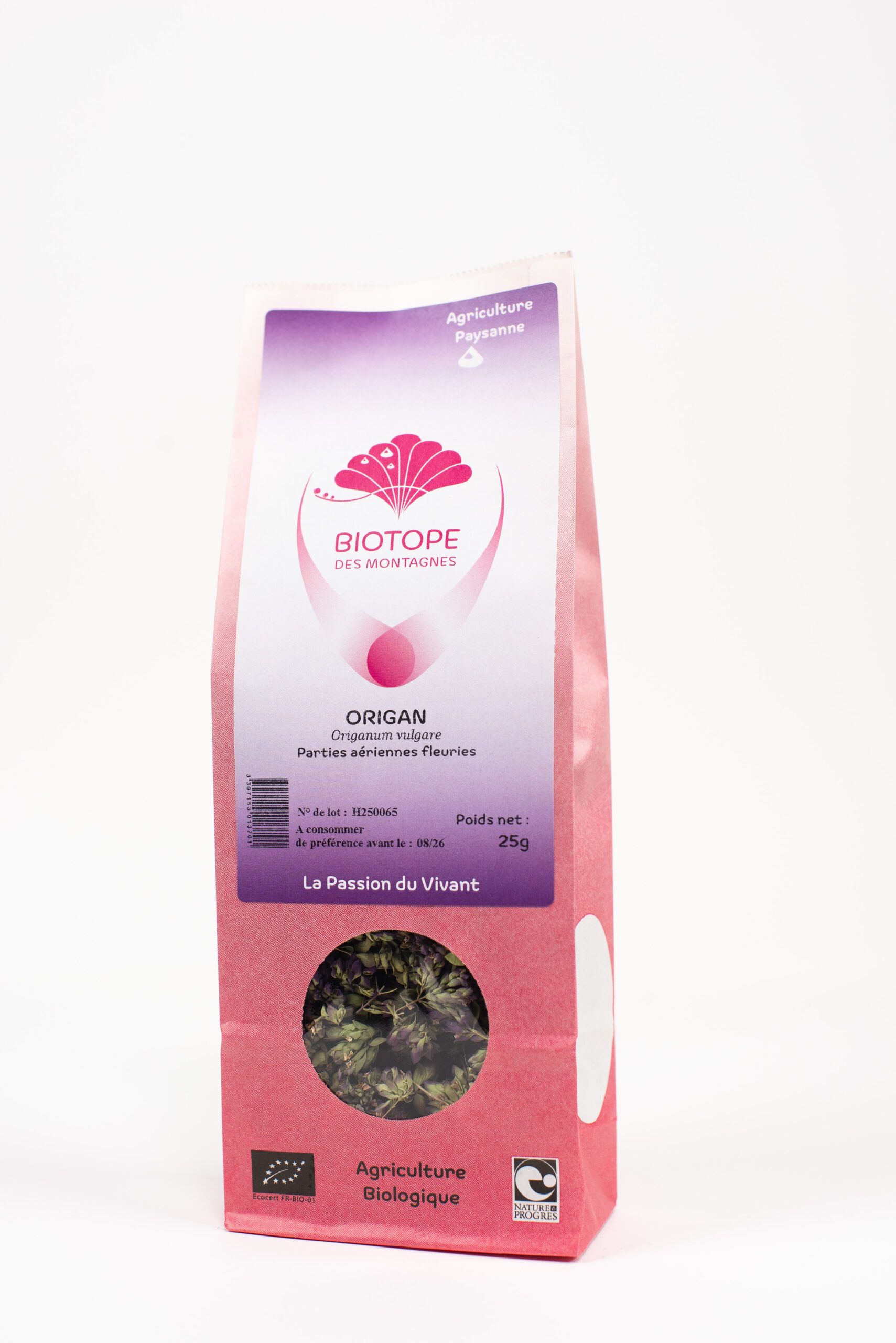 Toutes nos plantes sont issues d’une culture qui respecte l’environnement : elles sont cueillies afin de respecter leur milieu naturel ou produites selon des modes de cultures en milieu naturel, conformément aux quatre cahiers des charges que respecte Biotope des Montagnes.
