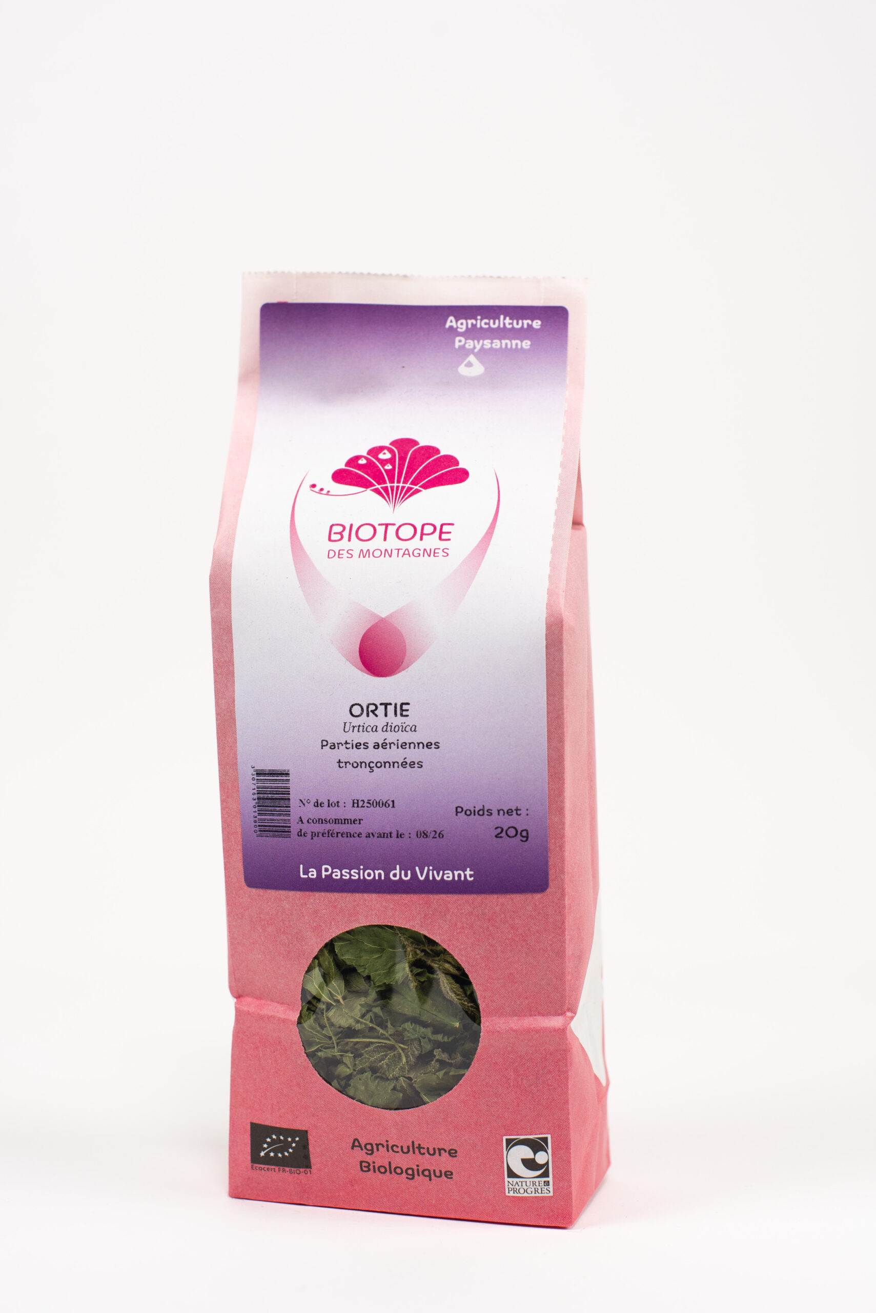Toutes nos plantes sont issues d’une culture qui respecte l’environnement : elles sont cueillies afin de respecter leur milieu naturel ou produites selon des modes de cultures en milieu naturel, conformément aux quatre cahiers des charges que respecte Biotope des Montagnes.